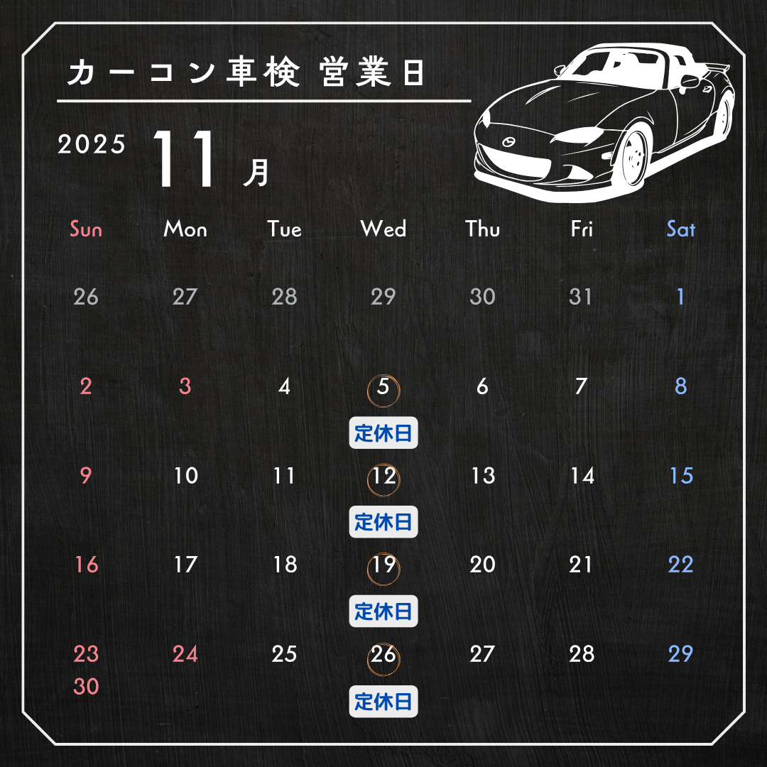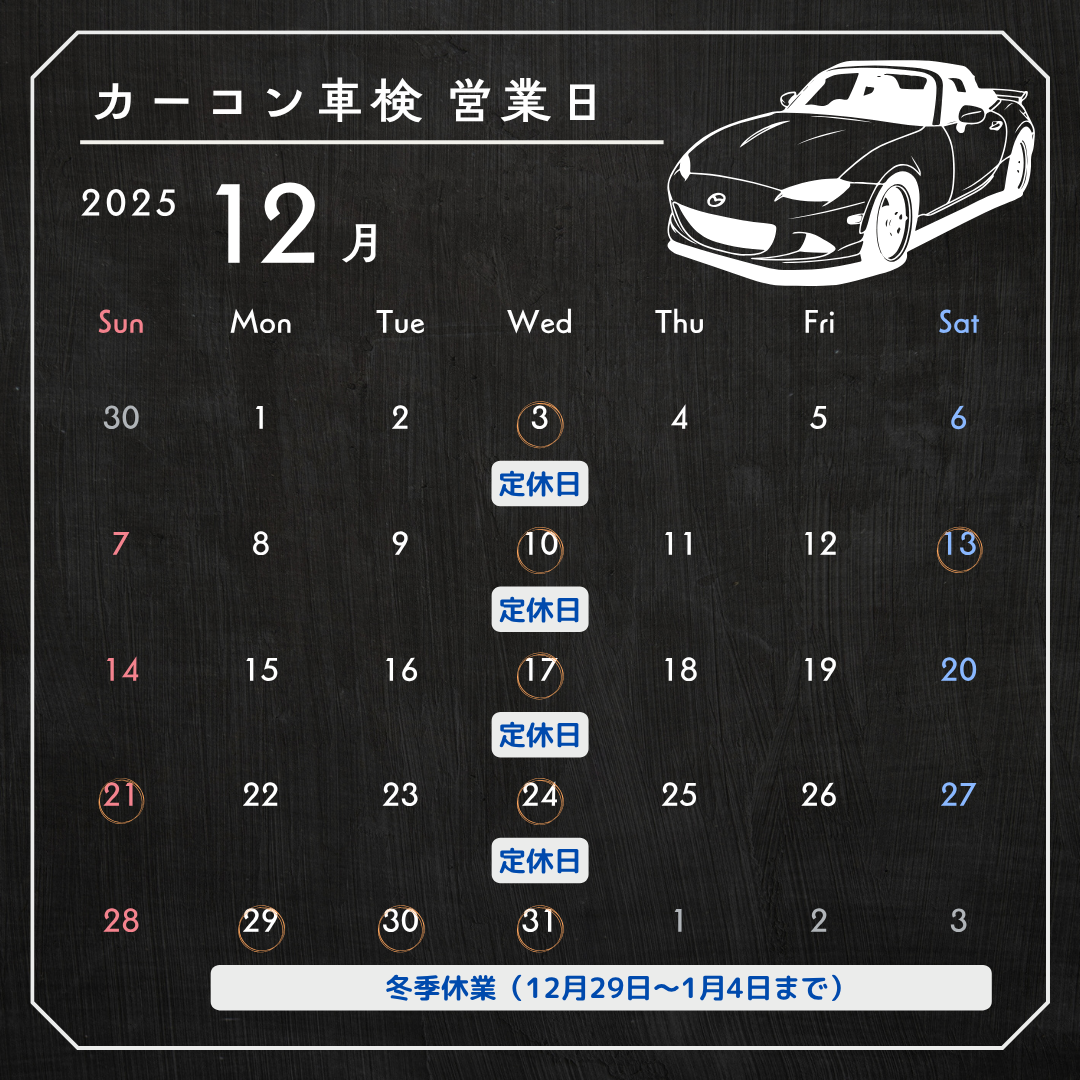 カーコン車検津山駅前店・真庭久世店の8月の定休日は