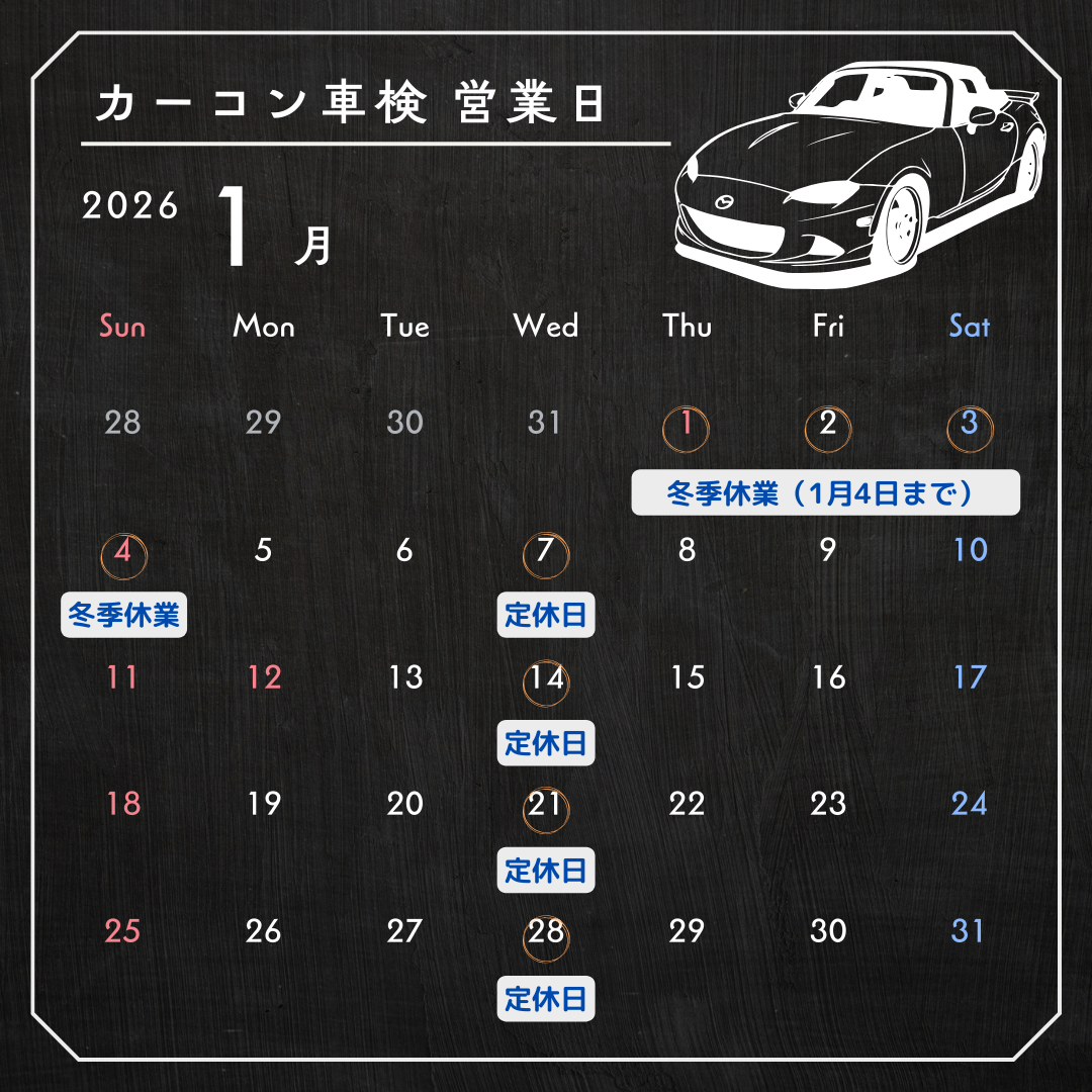 カーコン車検津山駅前店・真庭久世店の11月・12月の定休日は