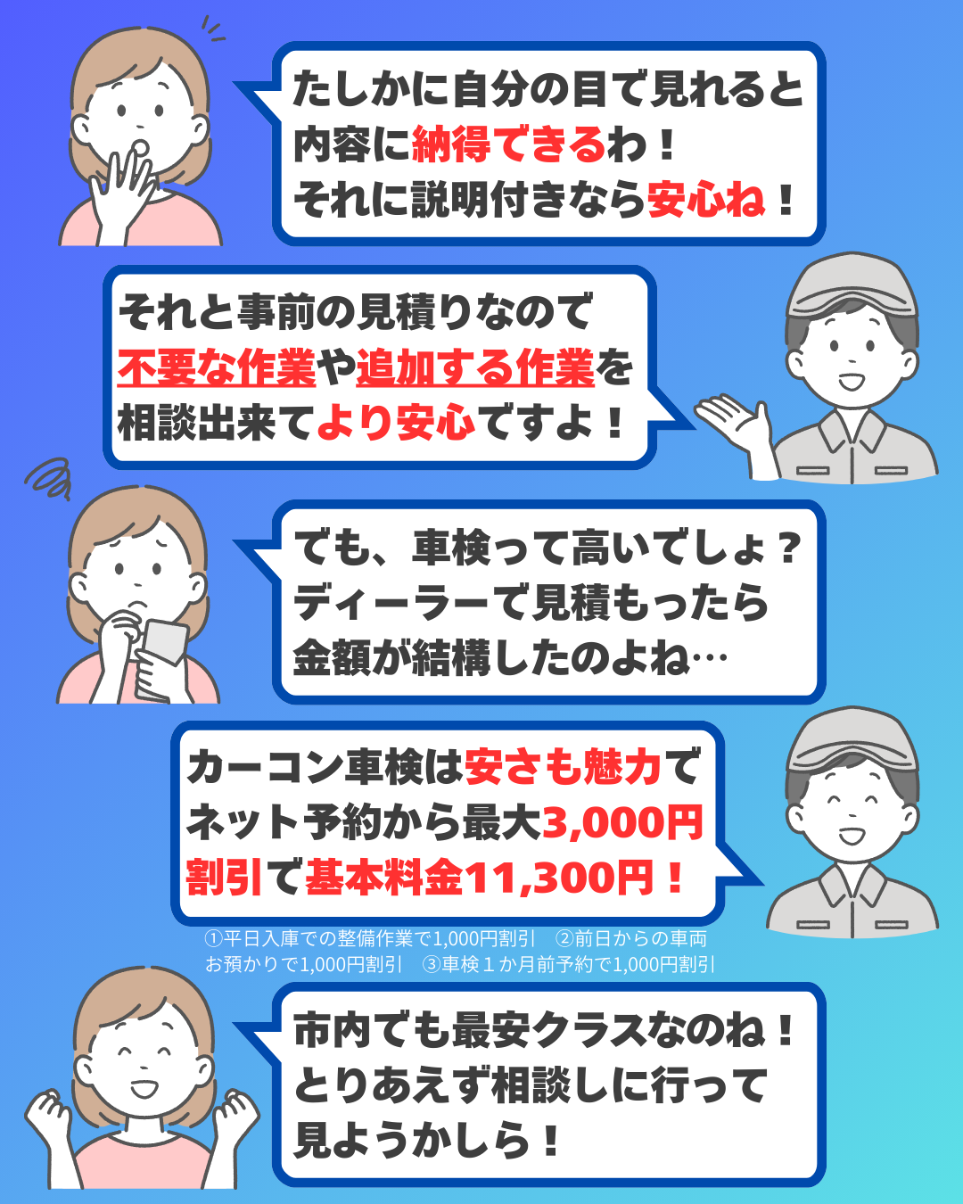 津山市、真庭市、美作市で車検を受けるなら、安心・納得のカーコン車検にお任せください